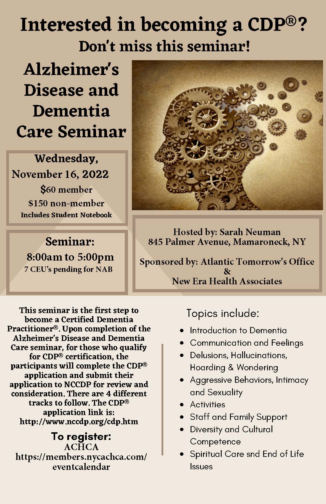 Become certified at the Colleges discount cost. Add CDP to your business cards and resume. Better care for the dementia resident and reduced resident to resident and resident to staff issues.
